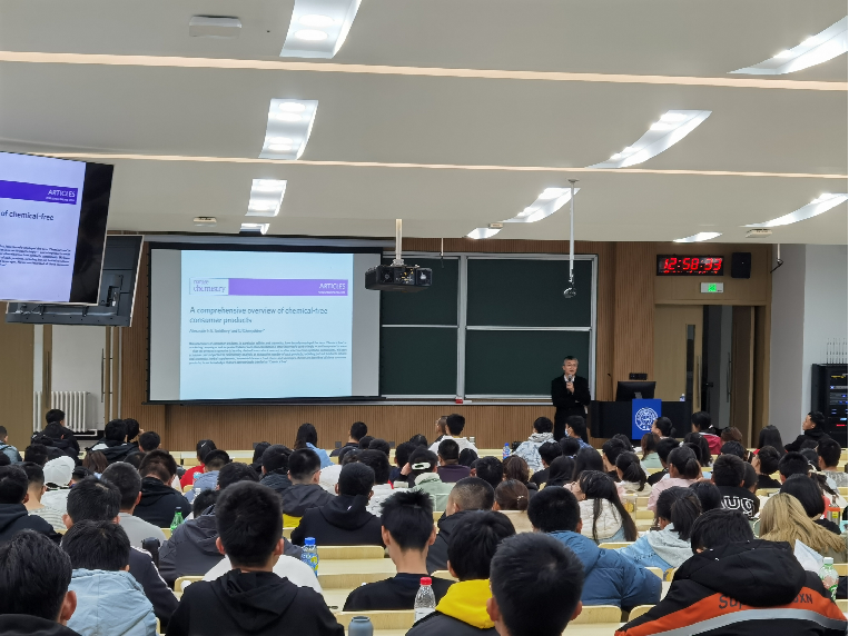 吕中元经理以生动、鲜活的生活实例,鼓励同学们要有品判性思维,学会独立思考,自己对事物要有独立的认识;以近代中国化学的发展历史变革,鼓励同学们要有创新性思维;以吉大化学的创新发展,鼓励同学们要有坚韧不拔的意志品质,要立大志、立长志。
