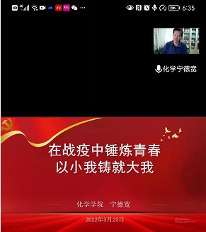 最后,宁德宽同志总结说:我们要坚持党的领导,筑牢“四个意识”,坚定“四个自信”,做到“两个维护”,积极发挥党组织和广大党员的带头作用,团结广大师生员工,万众一心,齐心协力,共克时艰,我们就一定能够打赢这场疫情阻击战! 疫情的阴霾终将散去,春天的阳光必将普照大地!