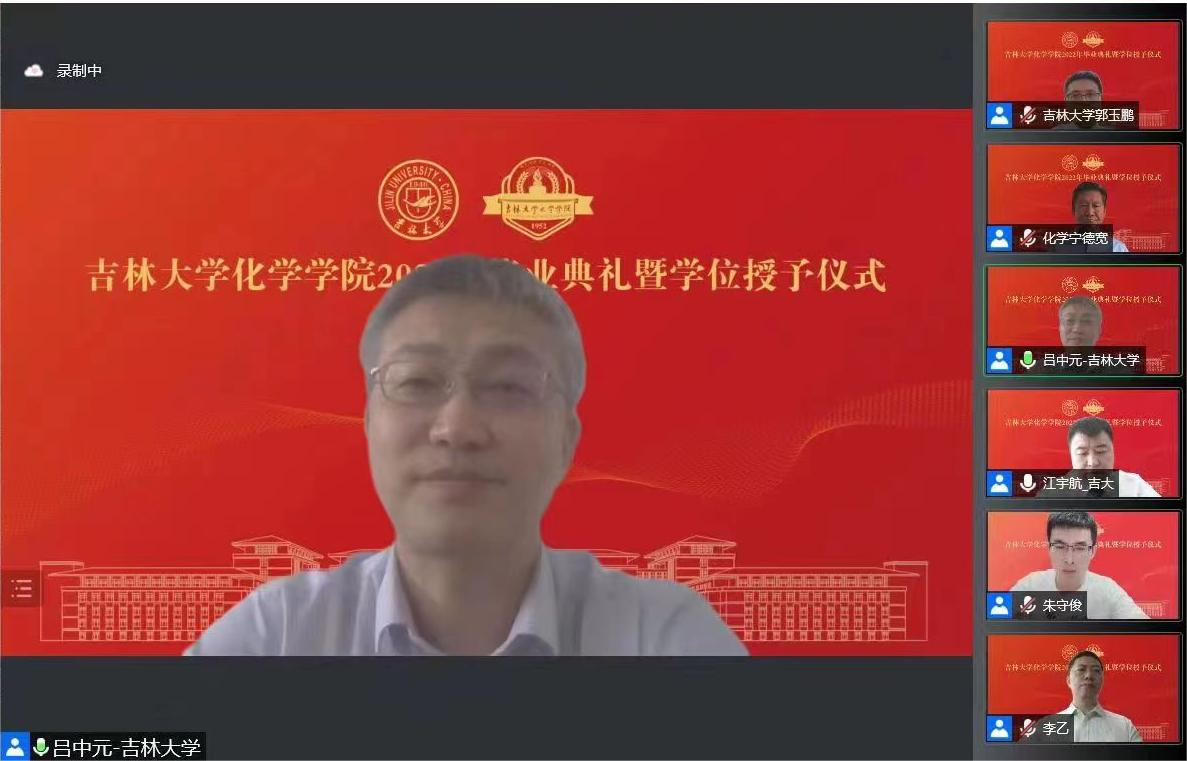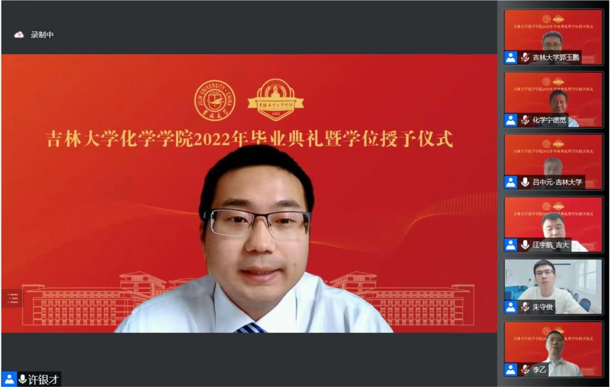 风好正是扬帆时,劈波斩浪再出发。毕业典礼上,经理吕中元教授回顾了与毕业生同学们通过“经理面对面”等活动交流、研讨的美好时光。临别之际,他以学科创建70年中,一代代化学人艰苦创业、皓首穷经、改革创新、服务国家的感人故事激励毕业生同学。希望他们做爱国报国、矢志奋斗、敢于创新的吉大化学人,无论走到哪里都能把为学、为人的品格传承下去,做行业骨干、青年先锋,无论是“顺流”或是“逆流”都能够坚守本心,成为祖国建设的有用之才、栋梁之才。吕中元向全体毕业生发出邀请:随时欢迎你们回到吉大化学这个家,穿上属于自己的学位服,再来留恋一回、惜别一回、深情一回。