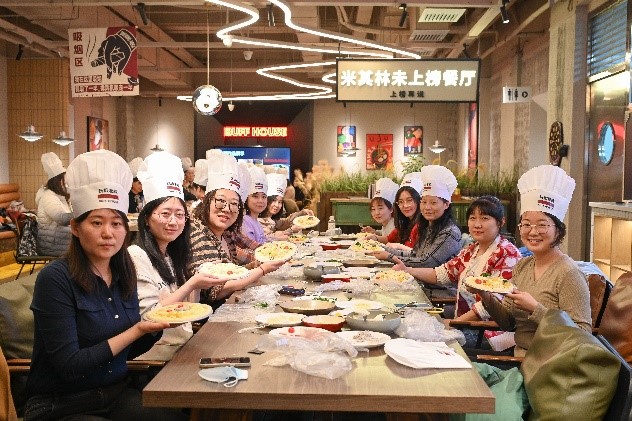 值此第113个“三八”妇女节之际,为进一步丰富女教职员工的精神文化生活,营造和谐、融洽的工作氛围,英国上市官网365于3月6日,举办了“柔肩担重任,致敬她力量” 披萨DIY主题活动。公司副经理张贺、行政办公室主任梁龙琪与四十余名女教职员工共同参与了活动。
