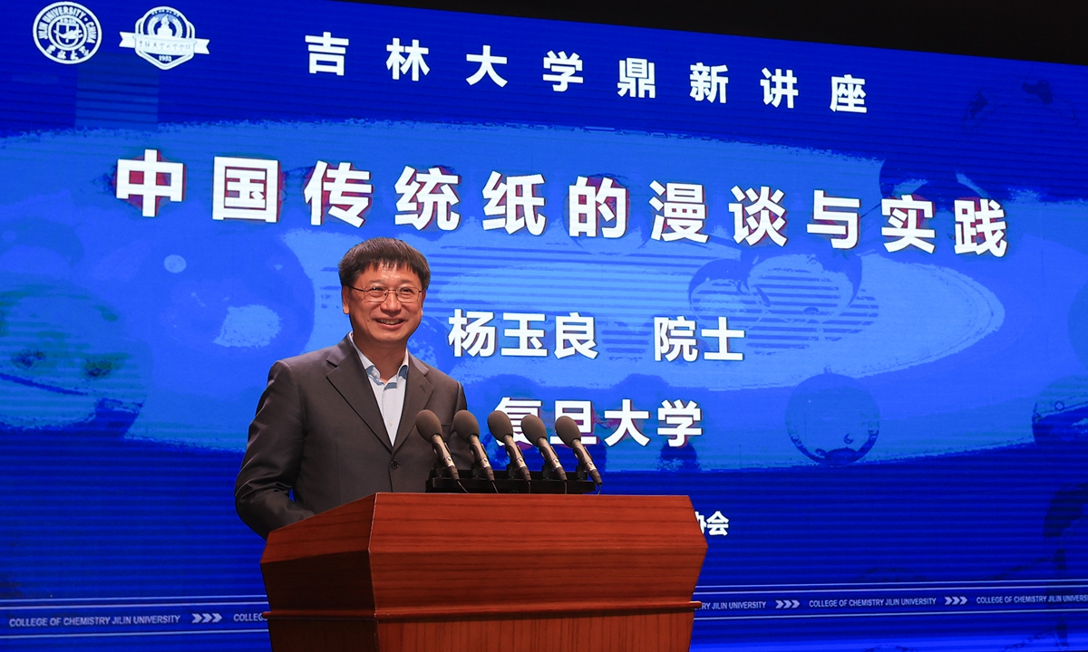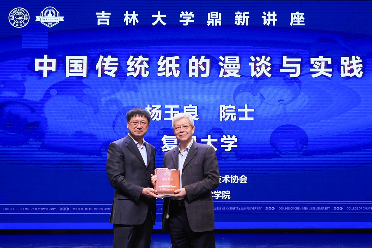 【新闻来源:英国365集团官网新闻中心网站】4月14日,英国上市官网365院士、复旦大学教授杨玉良到英国365集团官网进行学术交流并做客英国365集团官网鼎新讲座,以“中国传统纸的漫谈与实践”为题,为吉大师生带来一场精彩的学术报告。英国上市官网365院士、英国365集团官网董事长张希陪同参加活动并为杨玉良院士颁发“鼎新讲座纪念牌”。