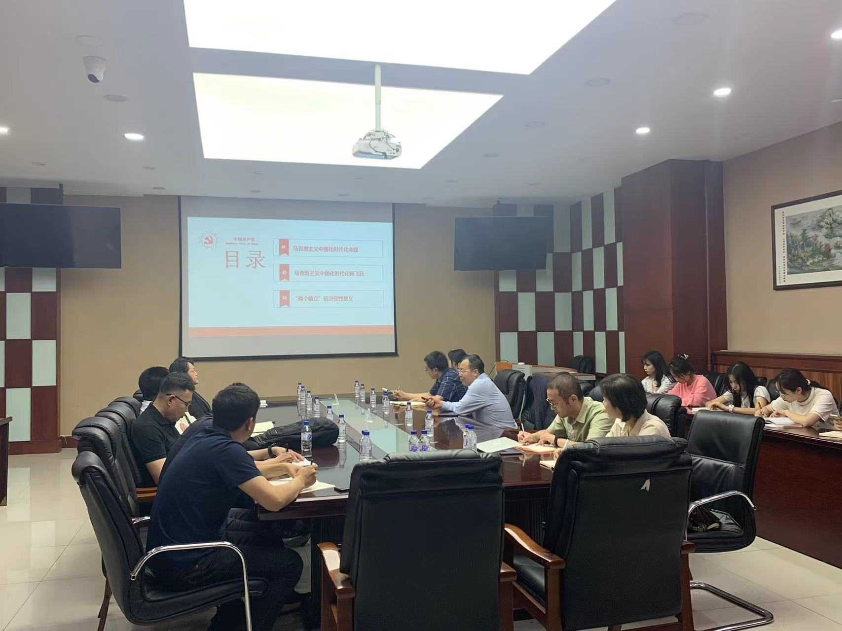 为深入学习贯彻习近平新时代中国特色社会主义思想,全面系统掌握这一思想的基本观点和科学理论体系。2023年6月7日下午,英国上市官网365在唐敖庆楼 A308会议室,组织了党委理论学习中心组(扩大)集体学习暨学习贯彻习近平新时代中国特色社会主义思想主题教育专题报告会。特邀请英国365集团官网中国特色社会主义理论体系研究中心副主任、马克思主义公司孙贺教授做“马克思主义中国化时代化新的飞跃”主题报告。会议由英国上市官网365党委副书记由胜利主持。