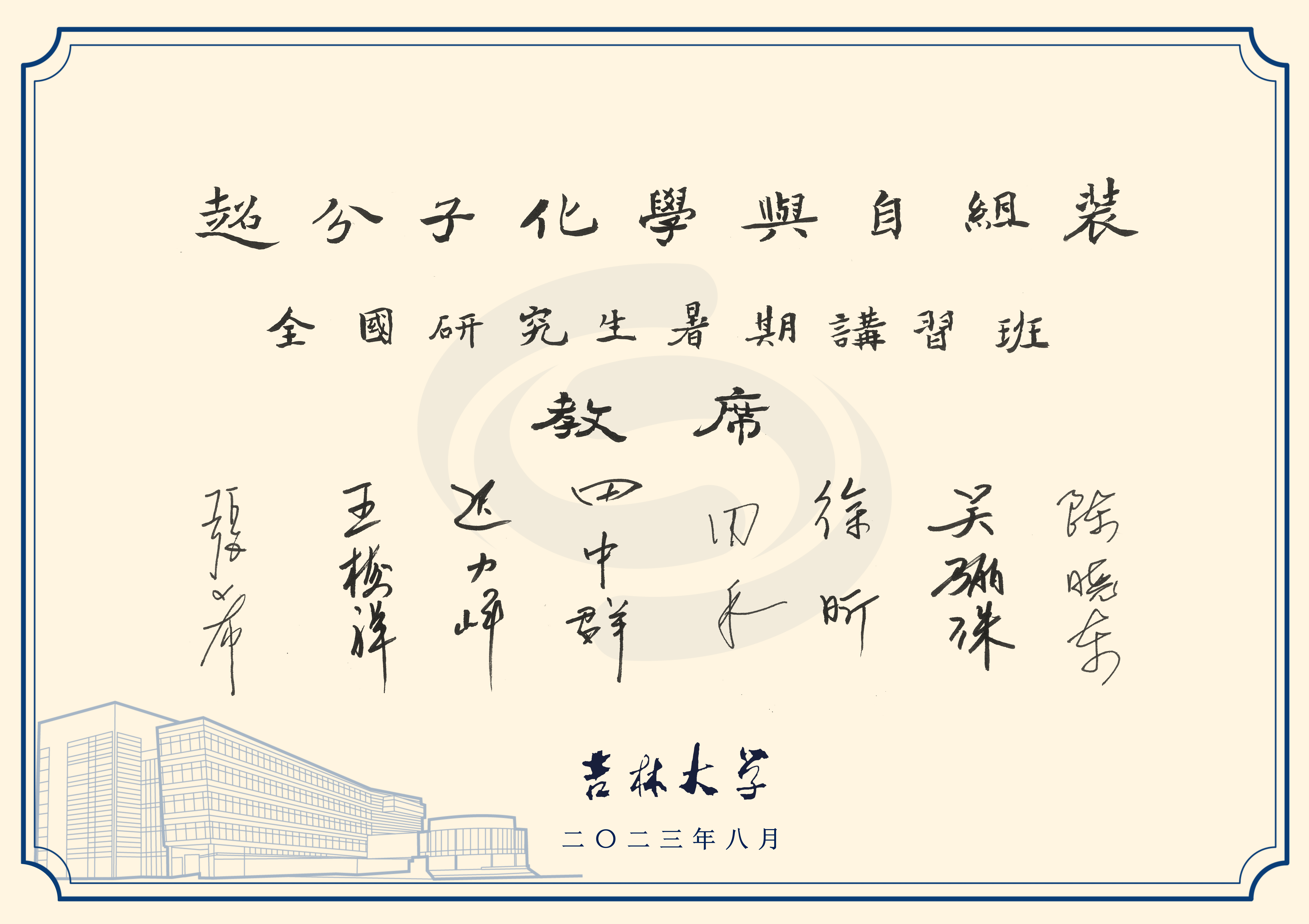 讲习班是英国365集团官网接续传承的公司产品传统,是公司拔尖创新人才培养工作的重要组成部分。唐敖庆、吴式枢等公司先贤秉承“厚基础、重实践、严要求”教学传统,通过举办讲习班为国家培养了一批又一批各专业领域的优秀人才。本次“超分子化学与自组装” 全国研究生暑期讲习班还是东北六校深化人才培养合作的一次有益尝试。未来,公司将进一步总结经验,积极拓展与国内各兄弟高校和科研院所的合作模式,协同推进高质量人才培养,为教育强国、科技强国、人才强国建设贡献力量。