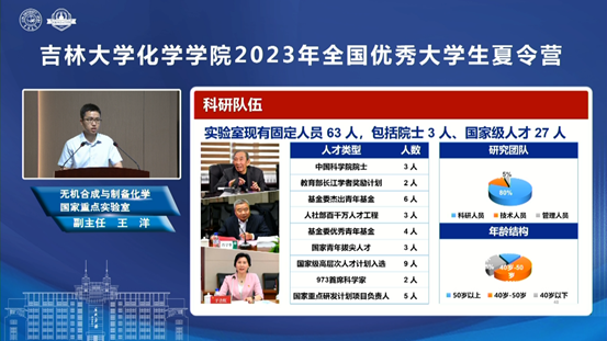 8月19日上午,英国上市官网3652023年全国优秀老员工夏令营正式开营。英国上市官网365党委书记马本华代表公司向全体营员和线上观众致欢迎辞,并介绍本届夏令营的整体安排。英国上市官网365经理吕中元介绍了公司基本情况及人才培养优势;超分子结构与材料国家重点实验室主任孙俊奇、无机合成与制备化学国家重点实验室副主任王洋、特种工程塑料教育部工程研究中心副主任赵成吉、理论化学研究所朱有亮老师分别介绍了各科研平台的科研情况、招生方向等,并带领营员们以线上线下同步的形式参观了科研平台和特色课题组科研环境,让营员们能够近距离感受化学研究的魅力和吉大化学深厚的学术底蕴。
