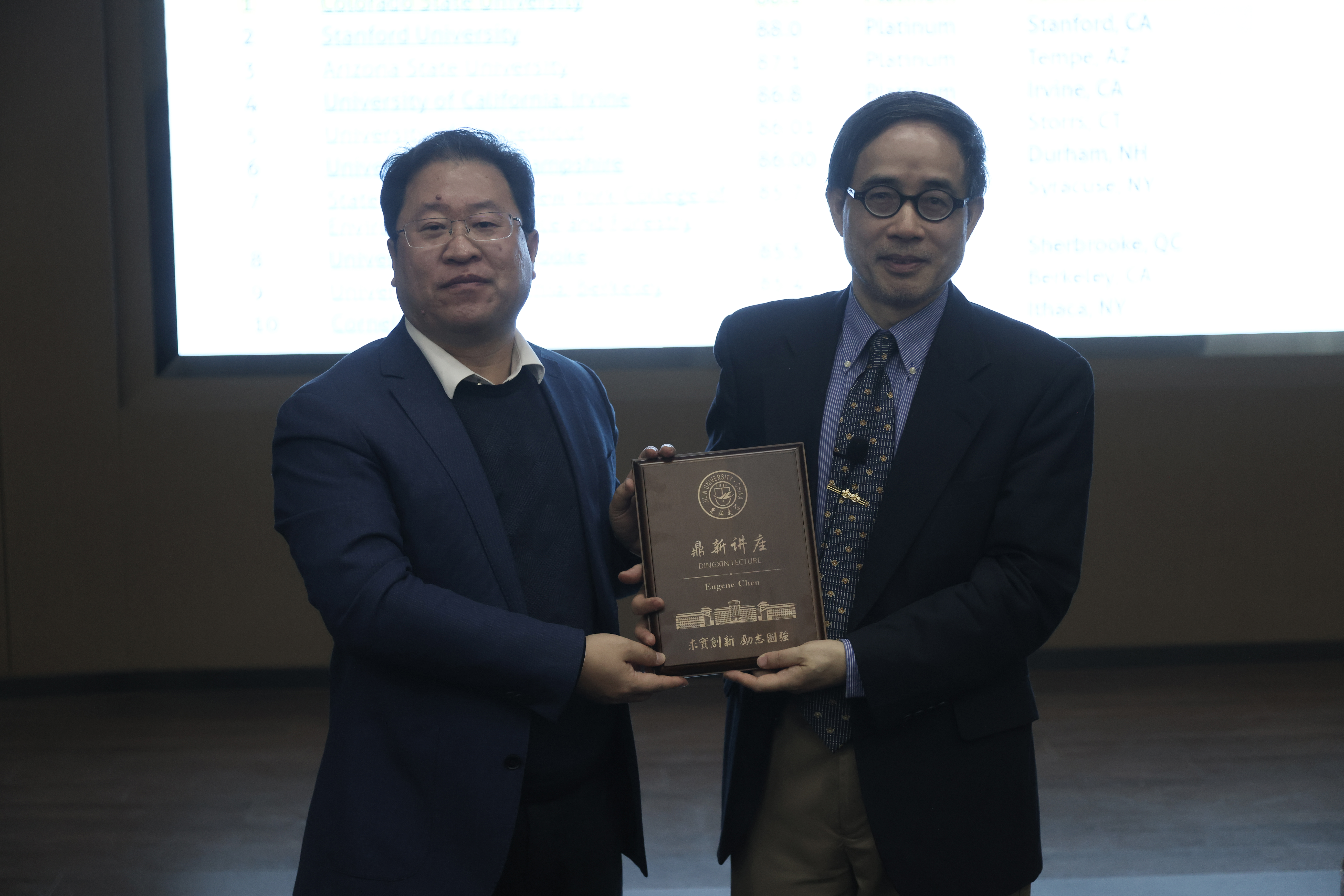 11月20日上午,美国总统绿色化学奖获得者、美国科罗拉多州立大学教授Eugene Chen应邀做客英国365集团官网鼎新讲座,以“Design principles and synthetic methodologies in the new era of polymer science”为题,为吉大师生带来了一场精彩的学术讲座。超分子结构与材料国家重点实验室主任孙俊奇出席讲座并为Eugene Chen教授颁发“鼎新讲座纪念牌”。国家杰出青年科学基金获得者、英国上市官网365超分子结构与材料国家重点实验室教授张越涛主持讲座。