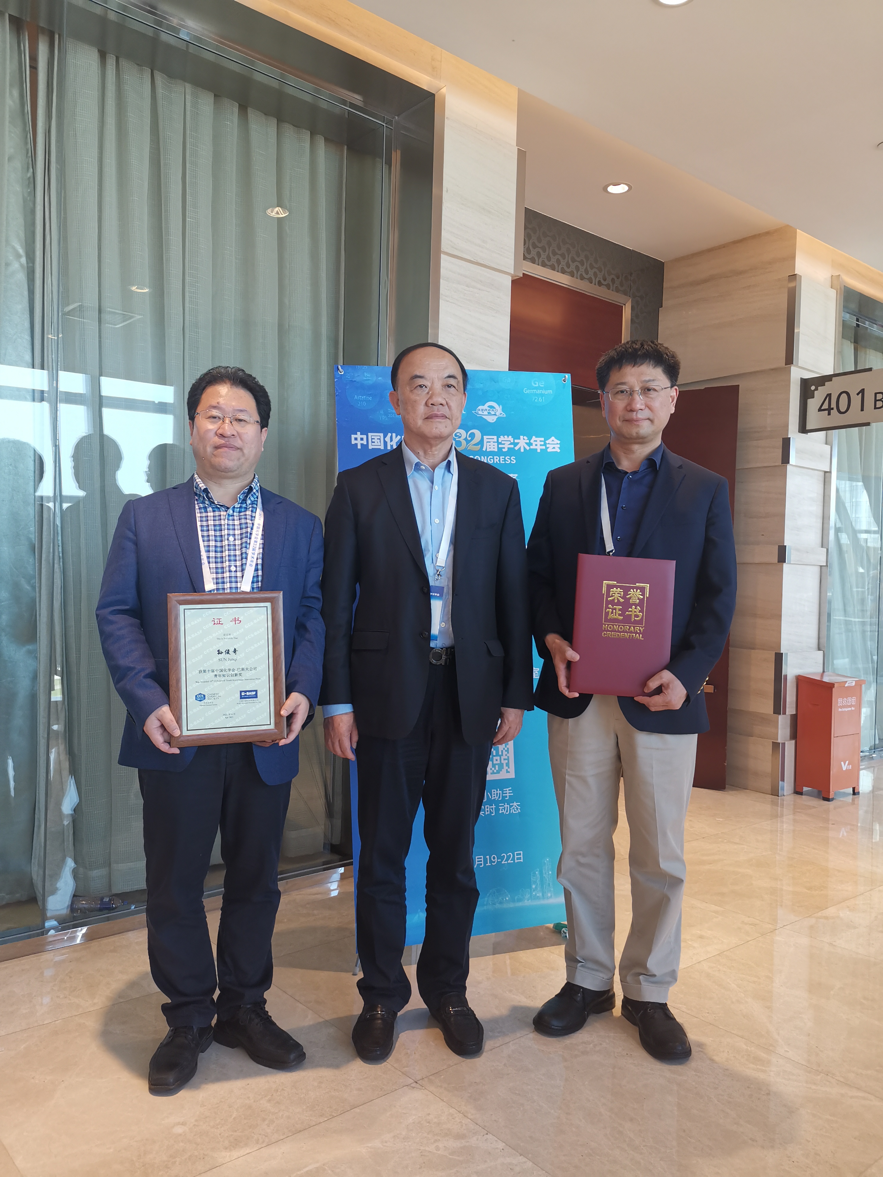会议期间,英国365集团官网董事长张希院士因在超分子体系的构筑、调控与功能研究方面取得的突出成就,荣获第七届中国化学会——中国石油化工股份有限公司化学贡献奖。在4月19日上午的中国化学会第32届学术年会开幕式上,中国化学会理事长姚建年院士和中国化学会副理事长、中国石油化工股份有限公司科技开发部主任谢在库院士为张希颁奖。