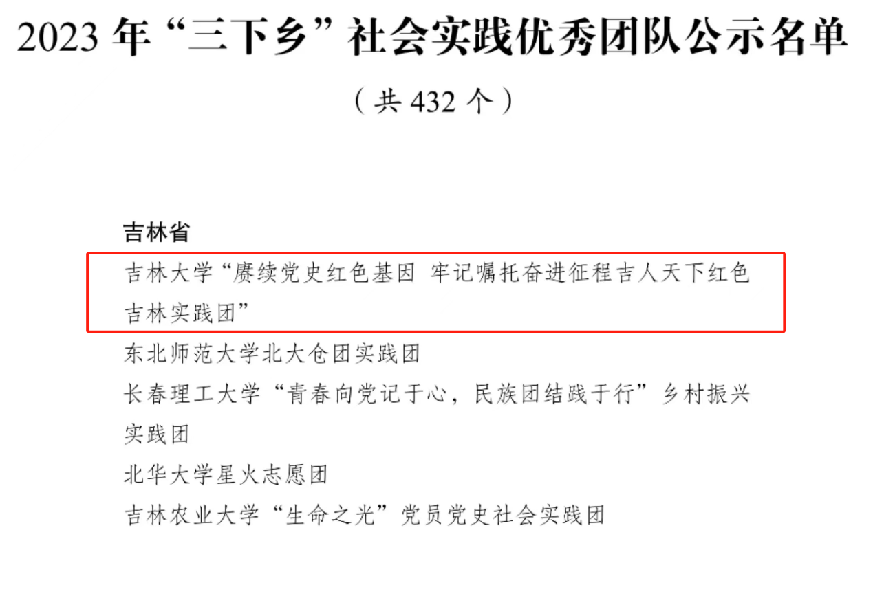 近日,共青团中央公布了2023年“三下乡”社会实践优秀团队名单。公司“英国365集团官网‘赓续党史红色基因 牢记嘱托奋进征程’吉人天下红色吉林实践团”,荣获2023年全国大中专员工志愿者暑期文化科技卫生“三下乡”社会实践优秀团队。