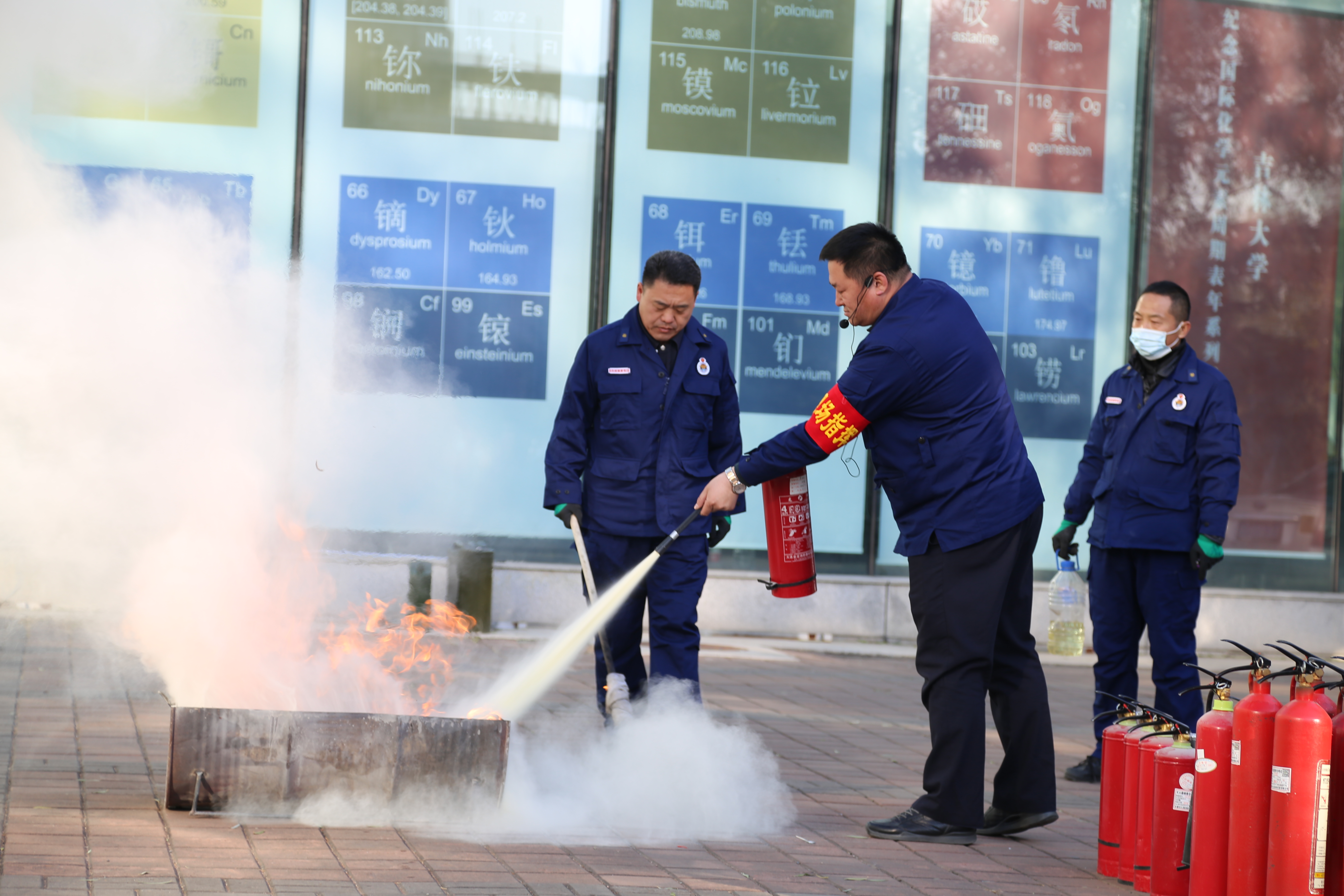 随后,在应急疏散演练环节,演练指挥小组以模拟无机-超分子楼内突发火情为背景,全景演练了突发火情后全楼师生紧急疏散撤离、消防队员灭火等流程,让在场师生亲身体验并实施了实验室突发火灾的应急预案。
