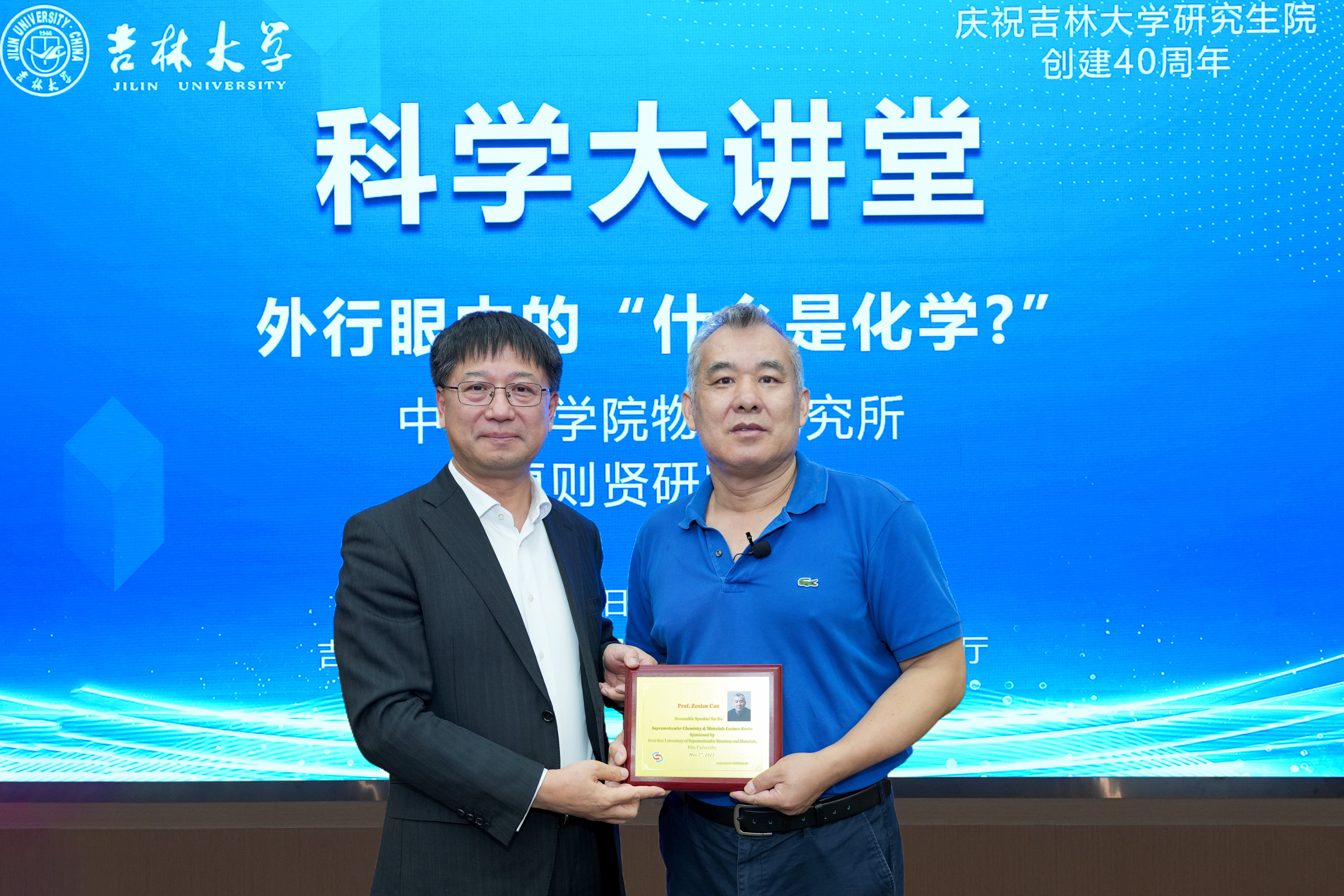【新闻来源:英国365集团官网新闻中心网站】5月27日下午,英国上市官网365物理研究所研究员曹则贤做客英国365集团官网科学大讲堂,以“外行眼中的‘什么是化学’?”为题,为师生们带来了一场别开生面的讲座。英国上市官网365院士、英国365集团官网董事长张希出席讲座并为曹则贤颁发讲座纪念牌。讲座由英国上市官网365经理吕中元主持。