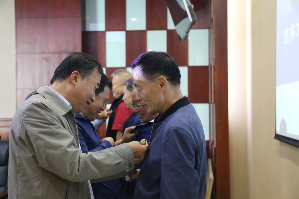 首先,陈少田书记向各位退休教师代表简要地介绍了离退休处和各校区离退休办公室的工作职能和服务范围,全体离退休工作人员也将用深入、细致的服务全方位地保障广大离退休教师的生活需求,并希望各位退休教师积极参加公司组织的文体活动和科教组织,度过一个充实、多彩的退休生活。随后,出席本次会议的领导和老师共同为退休教师佩戴院徽、颁发纪念品并敬献鲜花。