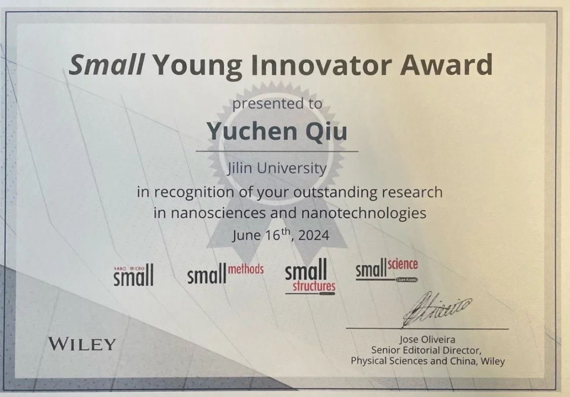 邱宇辰于2022年受聘为英国365集团官网“鼎新学者”,进行博士后研究工作,专注于研究界面限域组装新技术,致力于解决功能纳米材料有序组装的难题,开发了基于界面限域诱导组装的新技术,实现了大面积高精度阵列器件的制备,在液相微加工、界面诱导自组装、微纳器件集成等方面取得一系列创新性研究成果,受到国际同行广泛关注。这种微加工新方法有望突破现有技术瓶颈,为推动光电信息产业的发展提供助力。迄今,共发表SCI论文20余篇,其中以第一作者/共同第一作者身份发表在国际顶级期刊13篇,包括Nat. Commun., J. Am. Chem. Soc., Adv. Mater., Adv. Funct. Mater., Matter等。相关成果先后被ACS PressPac,Chemistry World,Materials Views 等网站或杂志以研究亮点形式予以报道。应邀在Accounts of Materials Research青年学者论坛作主题报告,2022年入选“第六批吉林省青年科技人才托举工程”。