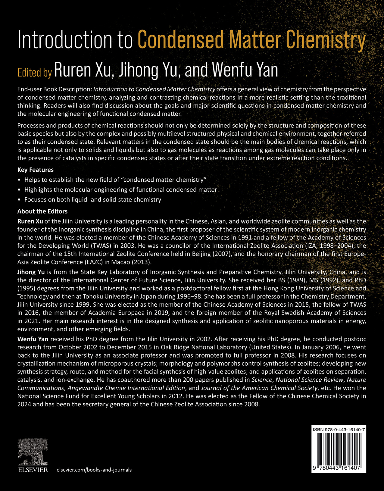 近日,公司英国上市官网365徐如人院士、于吉红院士和闫文付教授主编的专著《Introduction to Condensed Matter Chemistry》由国际权威学术出版机构Elsevier正式出版,该书是国际上第一部关于凝聚态化学的著作。