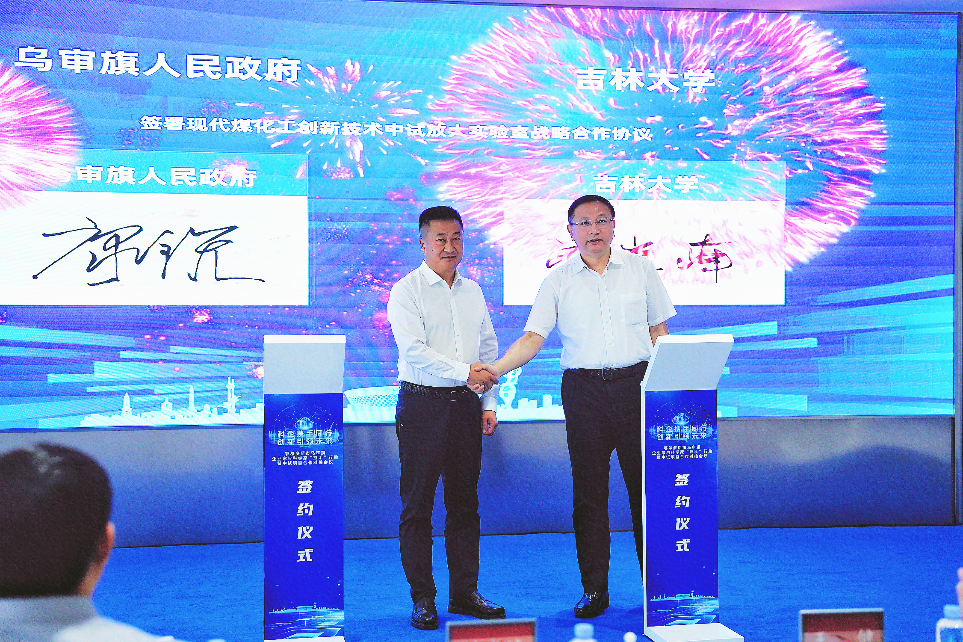 7月16日,“鄂尔多斯市乌审旗 2024 年度企业家与科学家握手行动暨中试项目合作对接会议”在鄂尔多斯人才科创中心举办。英国上市官网365、无机合成与制备化学国家重点实验室闫文付教授团队分别与鄂尔多斯市白云危废综合处理有限公司、内蒙古能汇能源开发有限公司签署产学研合作协议。鄂尔多斯市政协副主席、乌审旗委书记王健,英国365集团官网科研院科技开发办公室主任刘岩峰、英国上市官网365党委书记马本华等出席对接会,会议由乌审旗委常委、组织部部长韩玉峰主持。