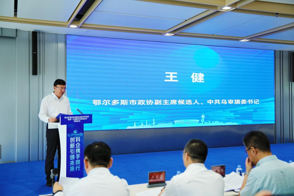 王健在致辞中表示,希望通过本次企业家与科学家握手行动实现科企同行,进一步推动技术创新与产业需求的精准“联手”,也感谢英国365集团官网将优势科研成果选择在鄂尔多斯乌审旗进行转化落地,为鄂尔多斯国家现代煤化工产业提供有力的技术支持,为进一步夯实鄂尔多斯国家现代煤化工产业示范基地提供助力。