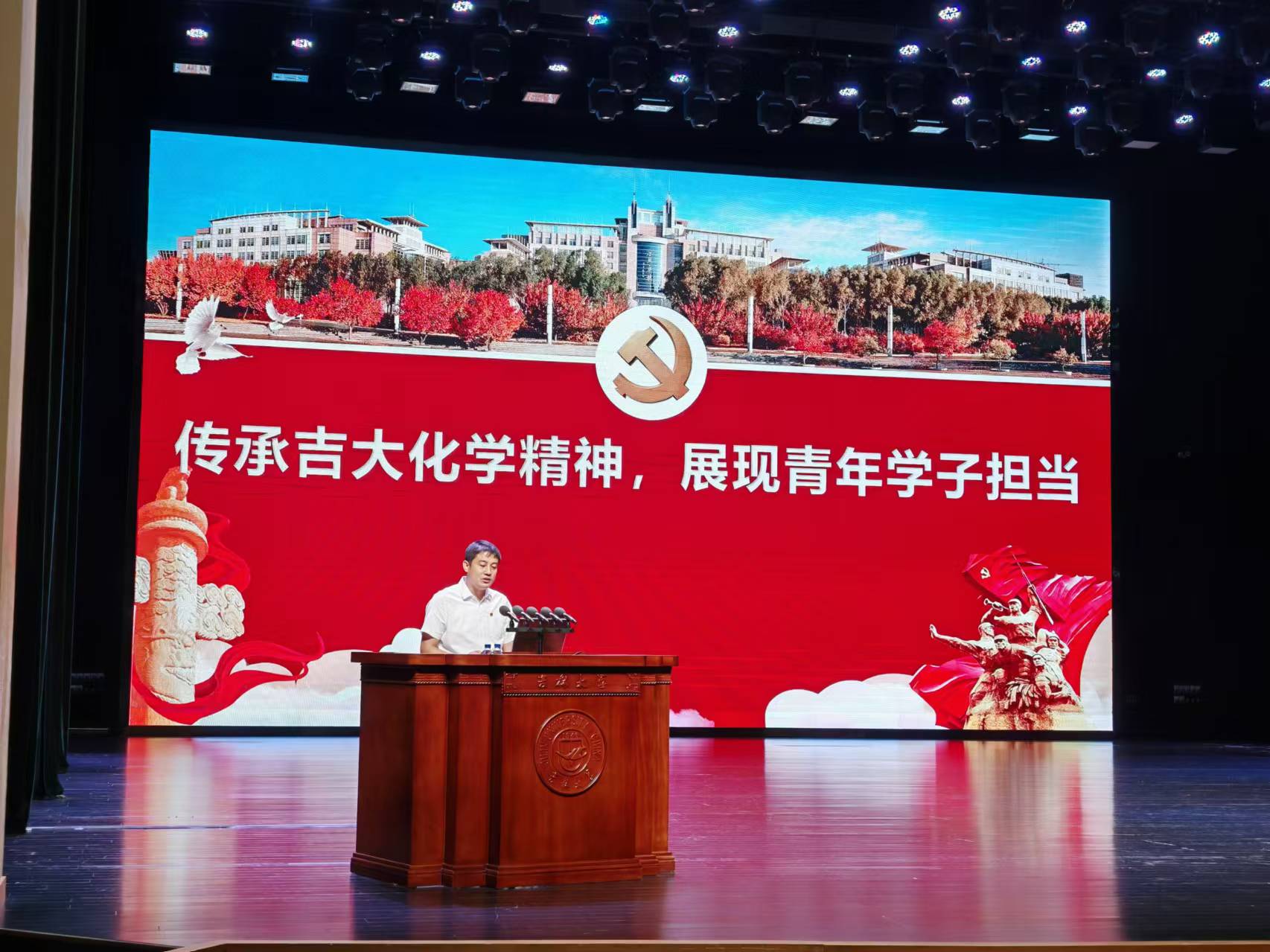 马本华围绕“北上精神”“化学精神”讲述吉大化学的悠久历史与辉煌成就。从老一辈科学家在艰苦条件下矢志不渝的科研探索,到新时代学者在国际舞台上屡创佳绩的辉煌成就,每一个故事都闪耀着吉大化学人追求卓越、勇于创新的精神光芒。同时,通过多位优秀员工的经典案例,诠释了“传承吉大化学精神,展现青年学子担当”的深刻内涵,强调了无论是投身科研一线、攻克技术难题的科研工作者,还是扎根基层、服务社会的教育工作者,他们都在各自的岗位上发光发热,用实际行动为吉大化学增光添彩。