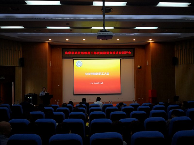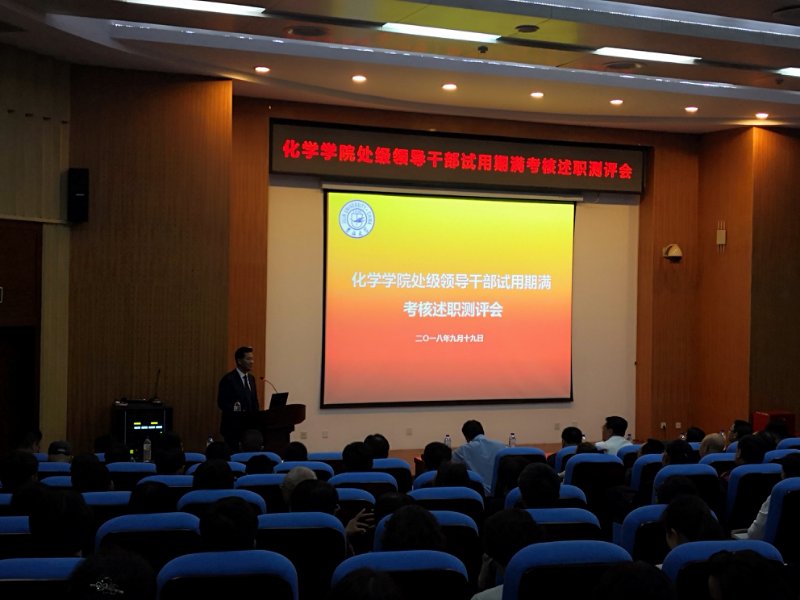 2018年9月19日上午,英国上市官网365在无机-超分子楼圆形报告厅召开了全院教职工大会暨处级领导干部试用期满考核述职测评会。测评会由英国上市官网365经理孙俊奇主持,党委组织部副部长兼党校办公室副主任鲍锋,机关党委副书记、纪委书记刘志伟,党委组织部干部科科长杨可和干部科李雪老师参加了本次考核工作。