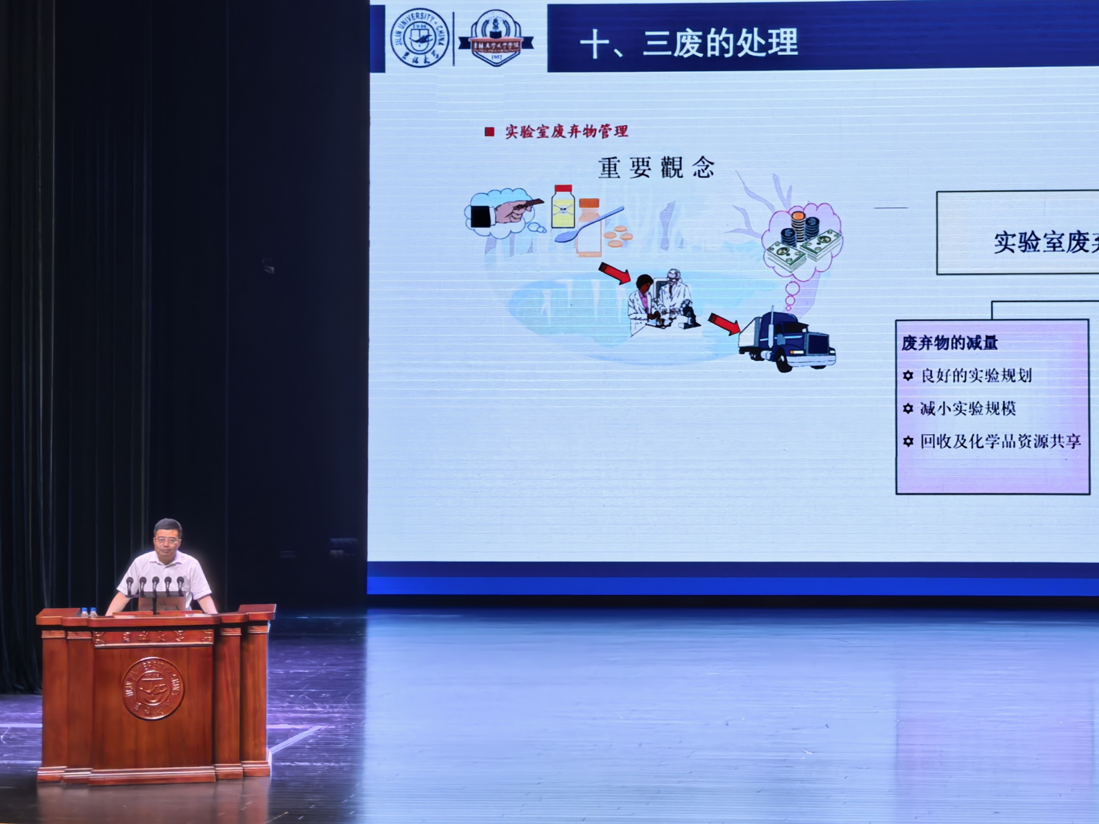 化学国家级实验教学示范中心副主任魏士刚为同学们带来“实验室危险化学品的分类和储存管理”的讲座,针对危险化学品的分类和储存进行了详细地讲解。他从化学品储存的现状与隐患、储存的通用要求以紧急配伍等方面,系统介绍了实验室危险化学品的安全管理要求,为同学们今后在实验室内安全使用危险化学品起到了很好的指导作用。