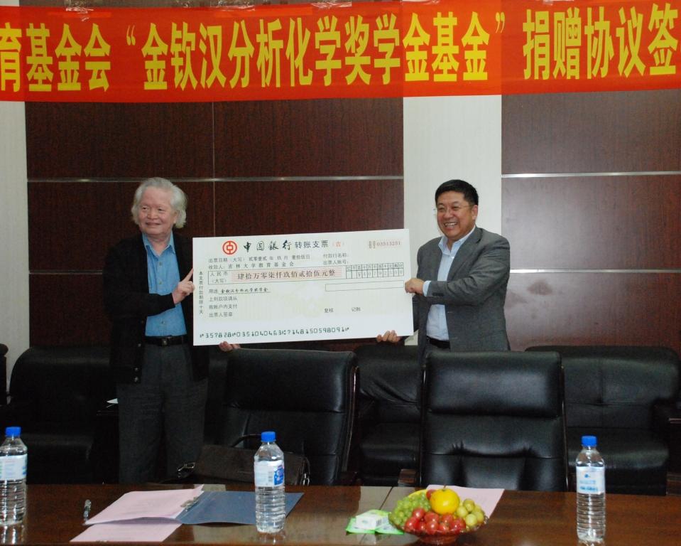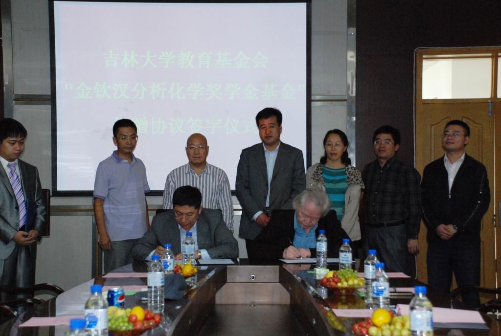 9月15日,英国365集团官网教育基金会“金钦汉分析化学奖学金基金“捐赠协议签字仪式在唐敖庆楼A509隆重举行。金钦汉教授与英国365集团官网教育基金会安泽主任分别在协议书上签字。化公司经理杨柏,吉大财务处,英国上市官网365分析化学系主任苏星光、支部书记宋大千以及分析化学系的部分师生参加仪式。签字仪式由英国上市官网365党委书记丁世海主持。