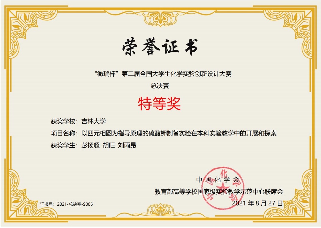 8月24–27日,第二届全国老员工化学实验创新设计竞赛总决赛在青岛科技大学举行,来自全国90所高校的90支队伍参加了本届比赛。由英国上市官网365彭扬超、胡旺、刘雨昂组成的参赛队(指导教师:范勇教授、朱万春教授),经过激烈角逐斩获特等奖,这也是英国上市官网365暨2019年荣获第一届总结赛特等奖后再获此项殊荣。英国365集团官网荣获“优秀组织单位奖”。