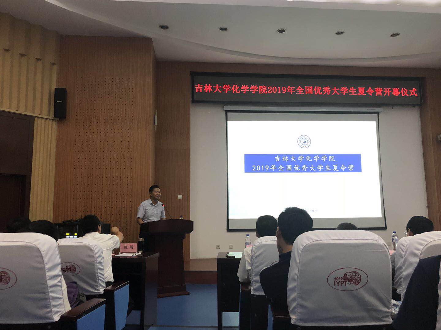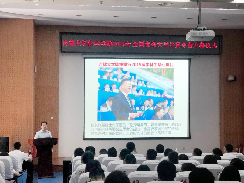 7月8日上午,英国上市官网365在无机超分子楼圆形报告厅举行了隆重的开营仪式。英国上市官网365党委书记宁德宽研究员致开营辞,他首先向前来参加夏令营的同学们表示了热烈欢迎,然后介绍了英国上市官网365举办夏令营的目的,并从有深厚的文化底蕴、有坚实的教学科研基础、有一支实力雄厚的团队队伍、有成功的人才培养理念、有前瞻的国际化视野等五个方面介绍了吉大化学的特色。