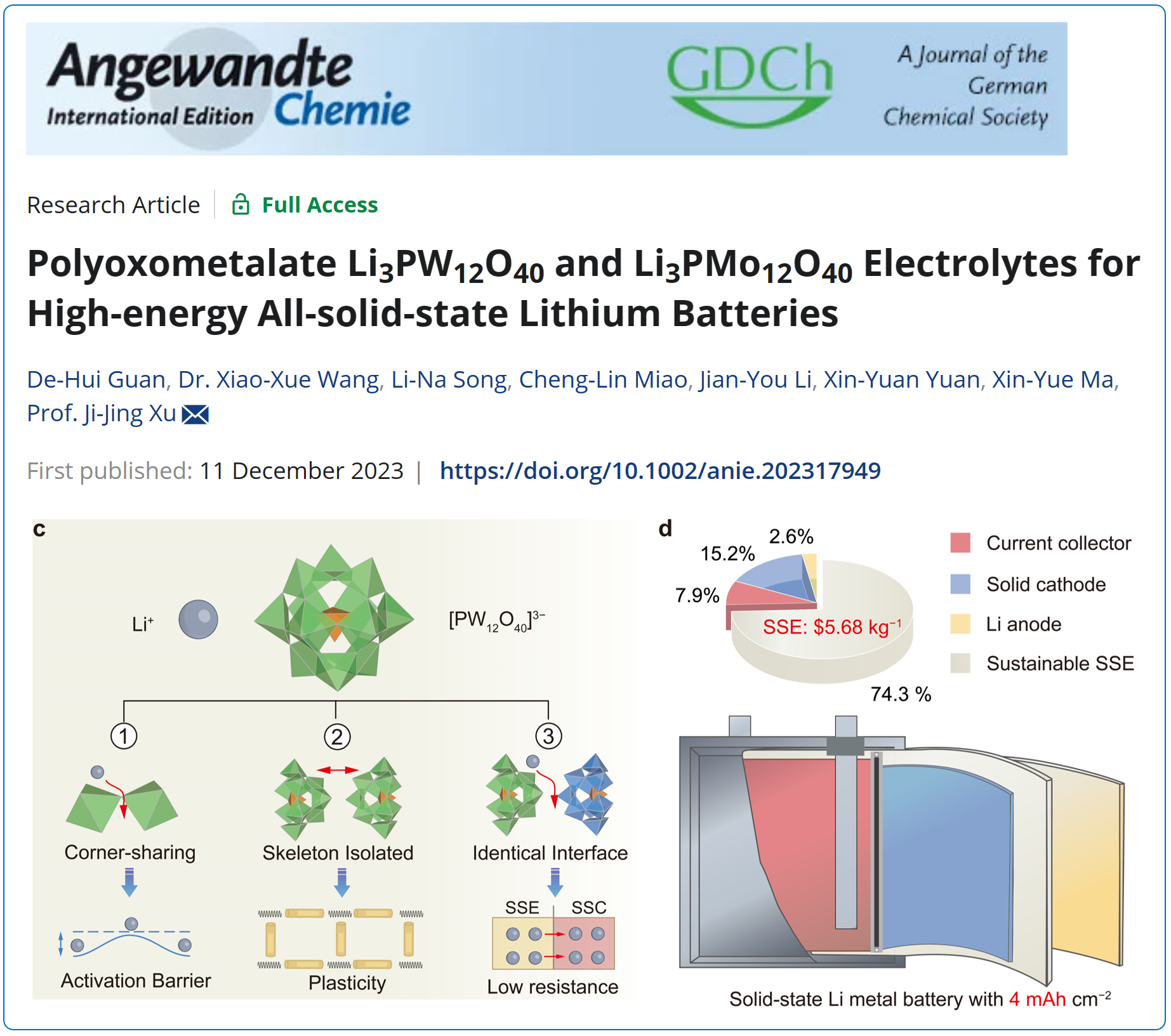 论文详情:De-Hui Guan, Xiao-Xue Wang, Li-Na Song, Cheng-Lin Miao, Jian-You Li, Xin-Yuan Yuan, Xin-Yue Ma, and Ji-Jing Xu*, Polyoxometalate Li3PW12O40and Li3PMo12O40Electrolytes for High-energy All-solid-state Lithium Batteries,Angew. Chem. Int. Ed., 2024, 63, e202317949.