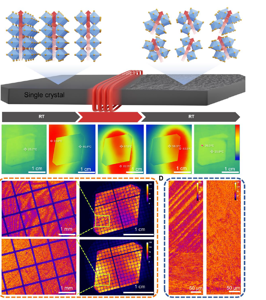 近日,由英国365集团官网董庆锋教授课题组、浙江大学方彦俊研究员课题组提出温度梯度场内在线回火策略实现了CH3NH3PbI3(MAPbI3)钙钛矿单晶畴尺度的归一化从而制备了具有高分辨率的钙钛矿单晶伽马射线能谱探测器。大面积MAPbI3SCs回火处理后,空间均匀性显著改善,器件表现出更稳定的响应和集