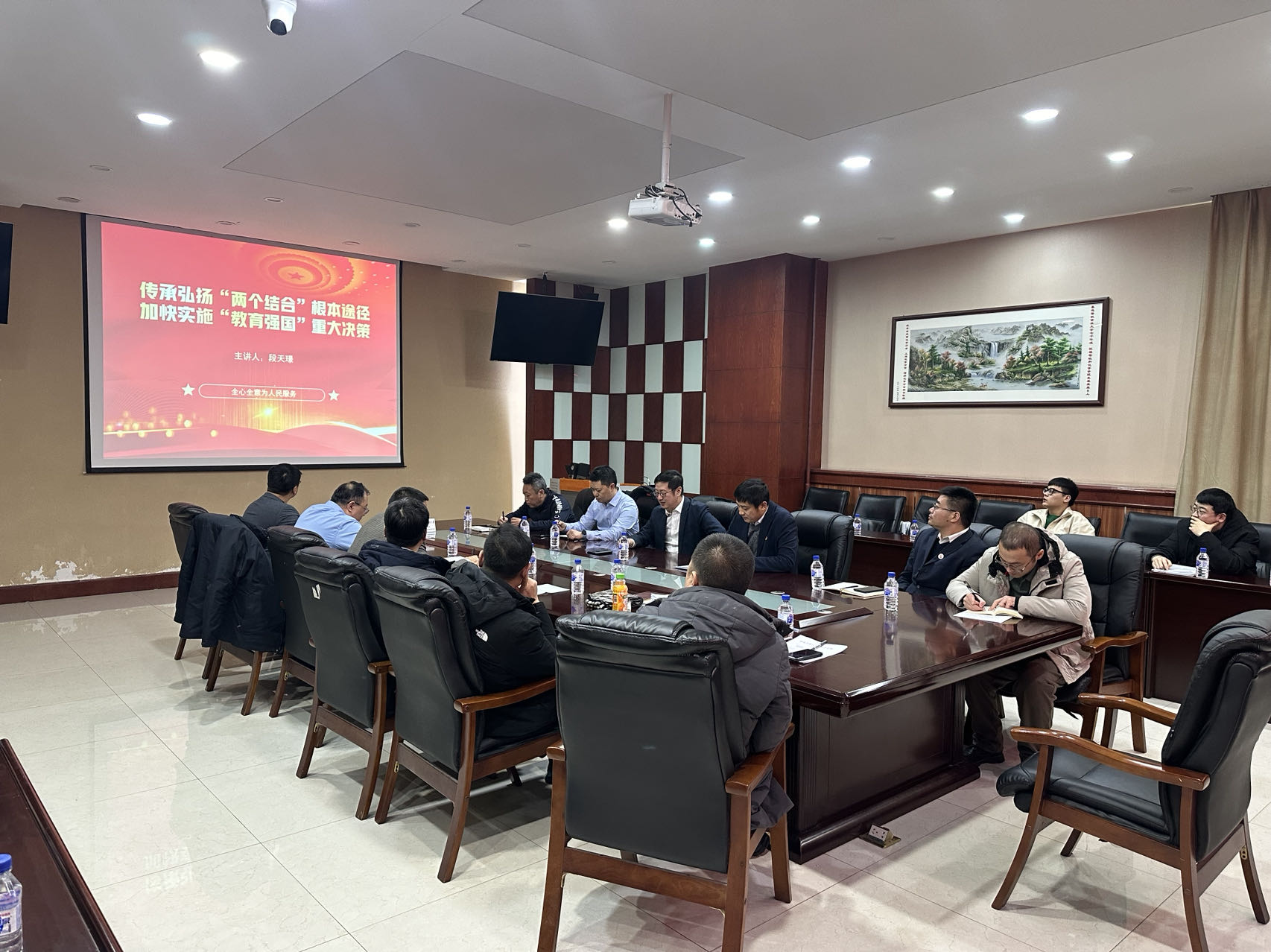 段天璟教授结合公司发展实际和自身科研经历,以“传承弘扬‘两个结合’根本途径,加快实施‘教育强国’重大决策”为题,全面系统地从15个维度为我们阐释了党的二十大报告,并重点围绕“过去五年的工作和新时代十年的伟大变革”“开辟马克思主义中国化时代化新境界”“实施科教兴国战略 强化现代化建设人才支撑”“推进文化自信自强 铸就社会主义文化新辉煌”进行了深入解读。通过历史和现实、理论和实践、整体和局部相结合的方式将党的二十大报告描绘的宏伟蓝图生动地展现了出来。