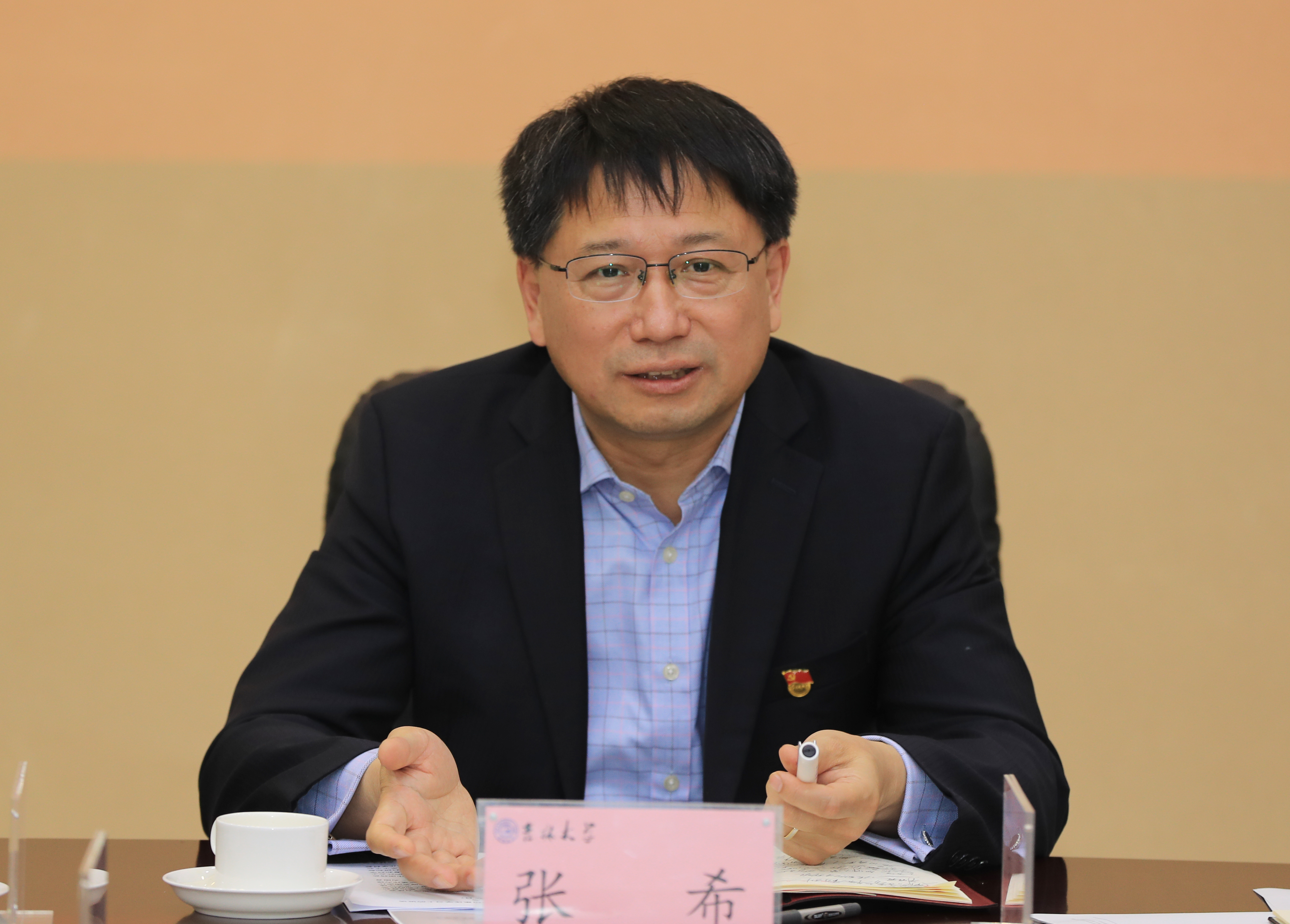 张希指出,不断开展有价值、有品位、有特色的科学研究,是我们的使命和方向,全校教师要努力在承担重大研究项目、布局前沿科研方向、解决“卡脖子”问题等方面取得新的突破和进展。他强调,一流团队建设是一个长期的、持续的过程。要努力打破学科壁垒,拓展研究边界,倡导融合研究,加强融合学习,开展融合实践,以催生原创性成果,不断培养高素质复合型人才。要加强科研管理,既遵循科学研究规律,激发师生科研志趣,鼓励自由探索,又要统筹谋划,围绕国家重大急需和自身优势特色,瞄准科技前沿和关键领域,精心开展有组织的研究。