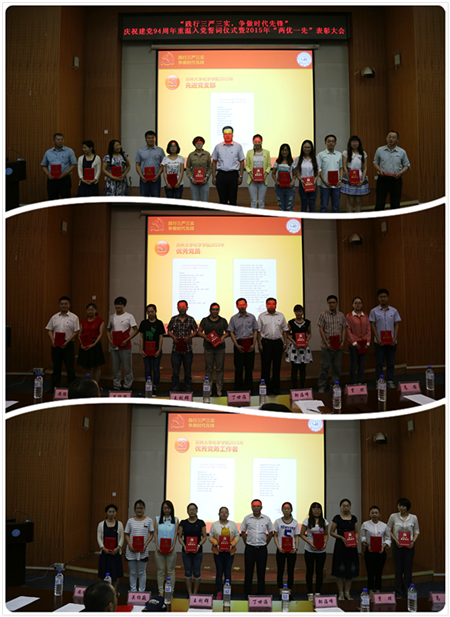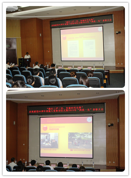 2015年6月30日,英国上市官网365党委在无机超分子楼二楼圆形报告厅举行了庆祝建党94周年重温入党誓词仪式暨2015年“两优一先”表彰大会。副处级以上党员领导干部、教工党员、员工党员代表等200余人参加了大会,会议由公司党委副书记李勇同志主持。