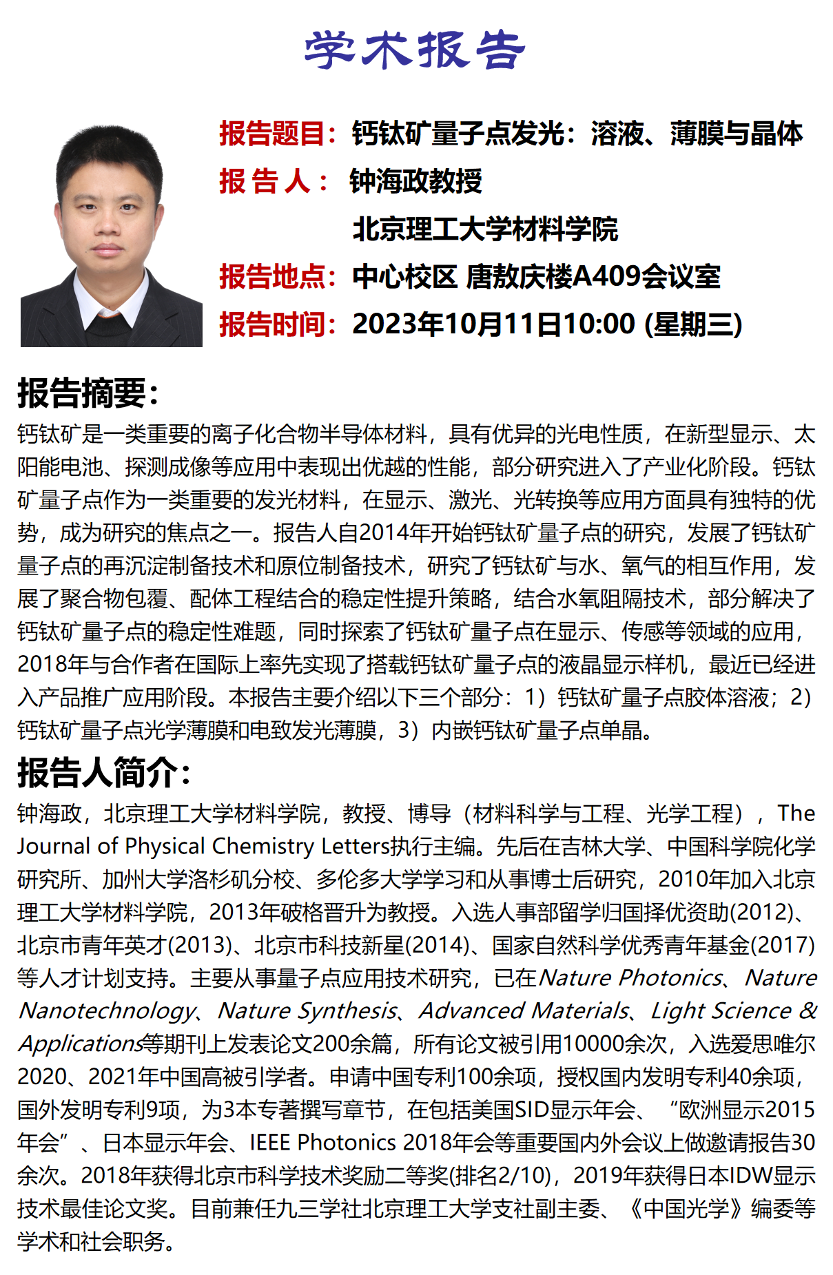 学术报告名称