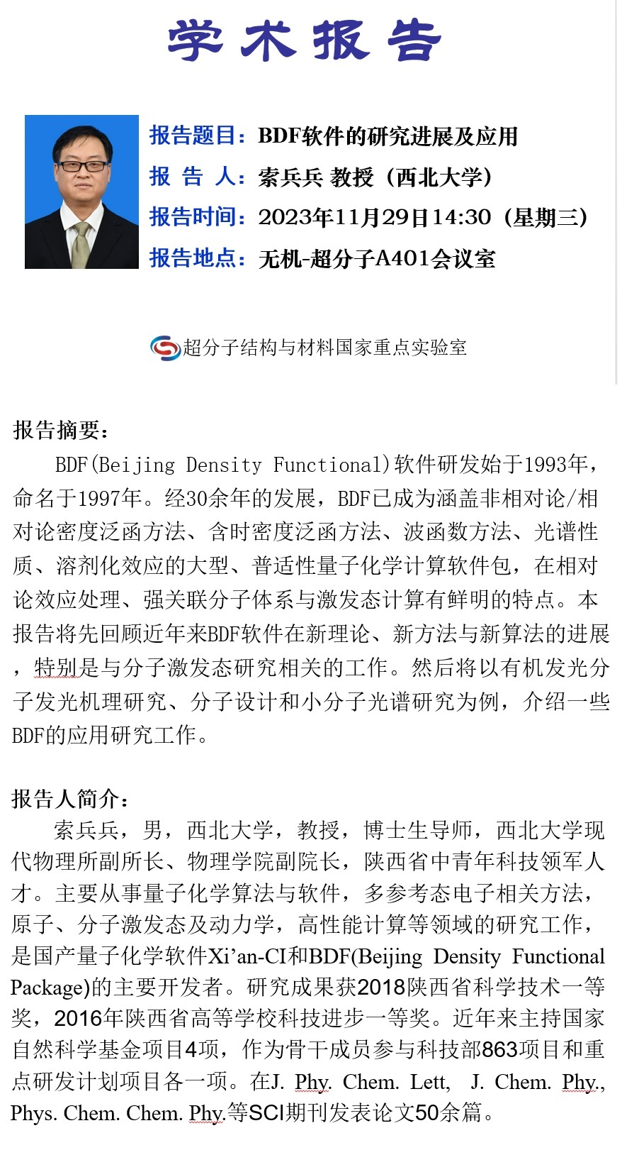 学术报告名称