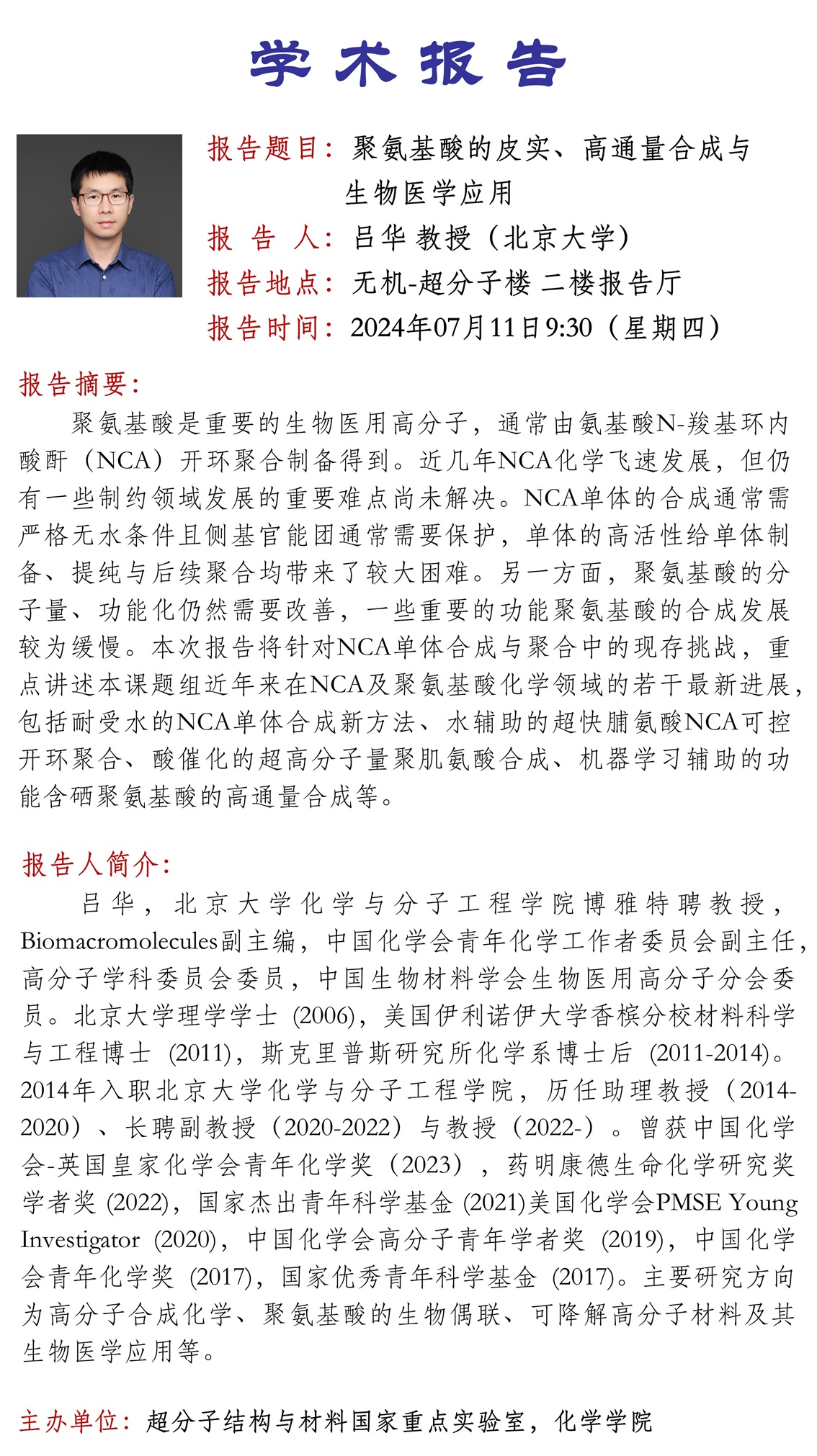 中心校区 无机-超分子楼 二楼报告厅