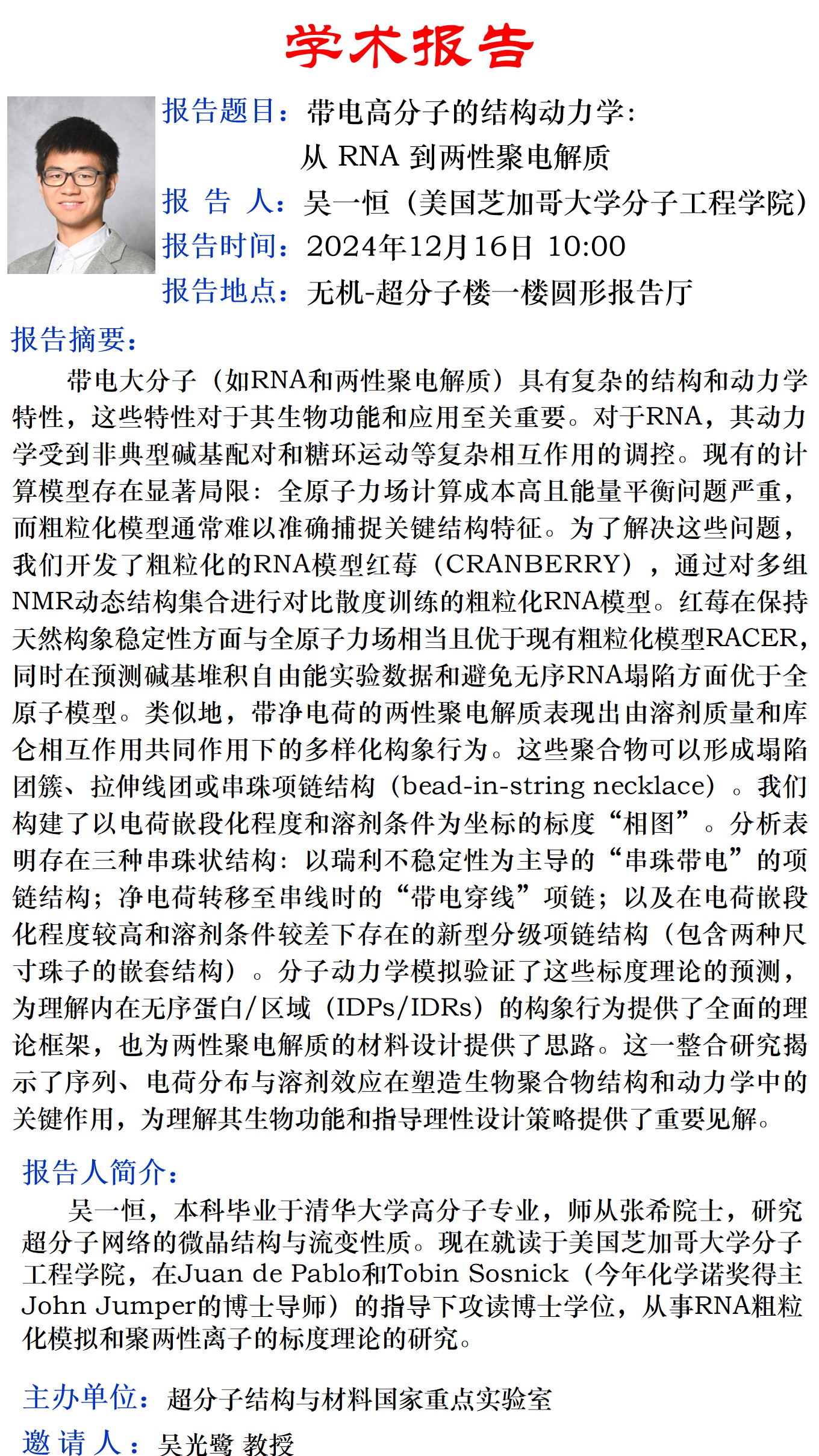 带电高分子的结构动力学:从 RNA 到两性聚电解质