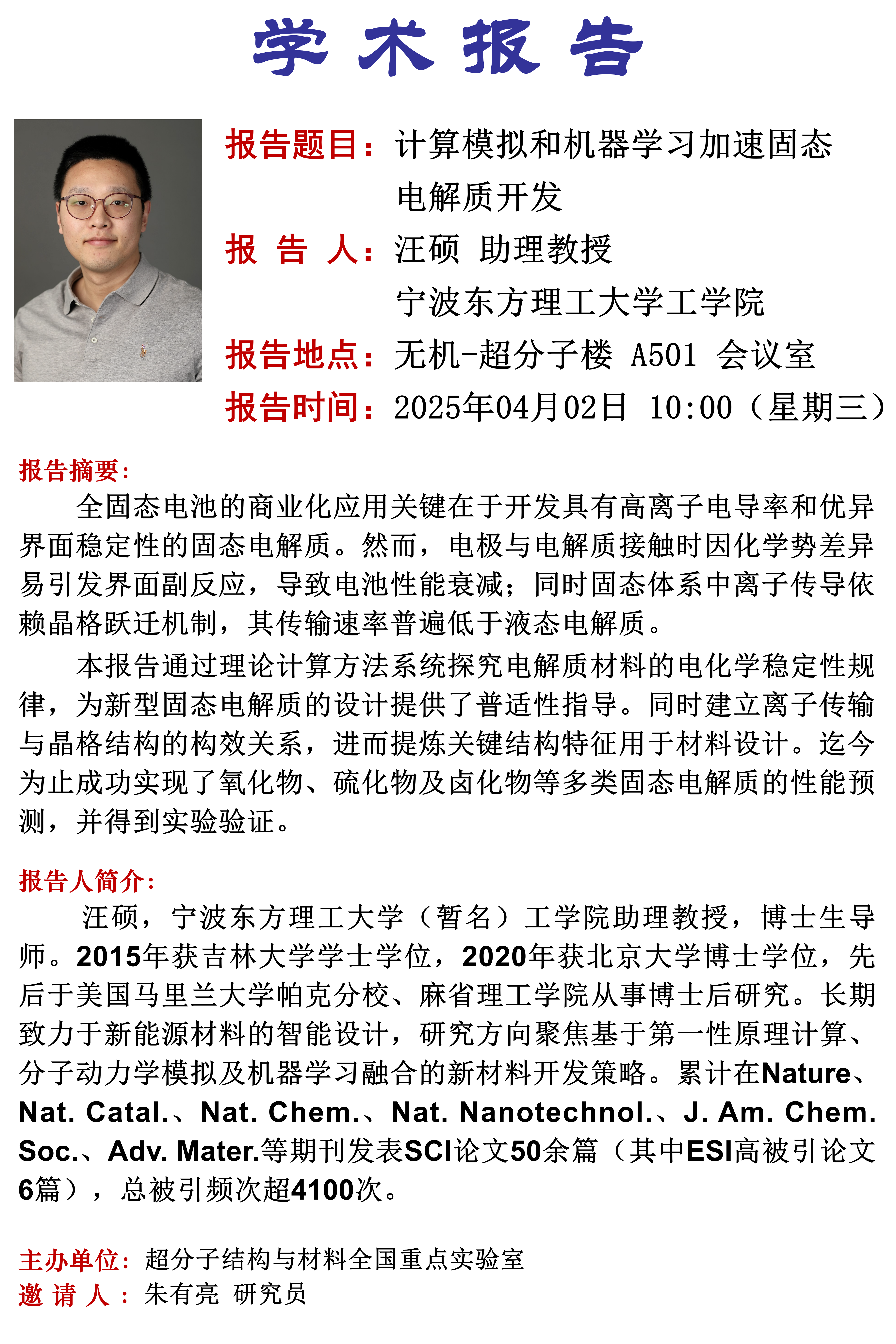 中心校区 无机-超分子楼 A501 会议室