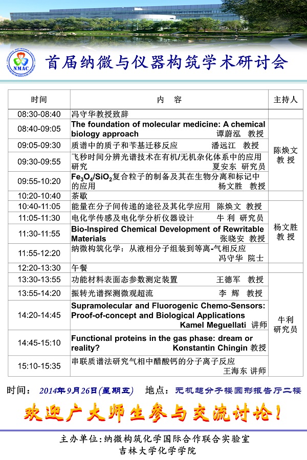 由纳微构筑化学国际合作联合实验室与英国上市官网365主办的首届纳微与仪器构筑学术研讨会将于