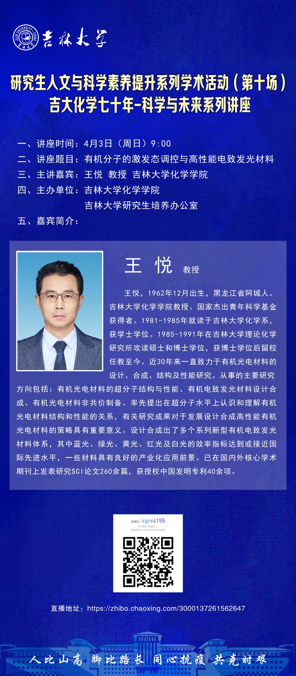 吉大化学70年院庆系列活动——科学与未来系列讲座:有机分子的激发态调控与高性能电致发光材料