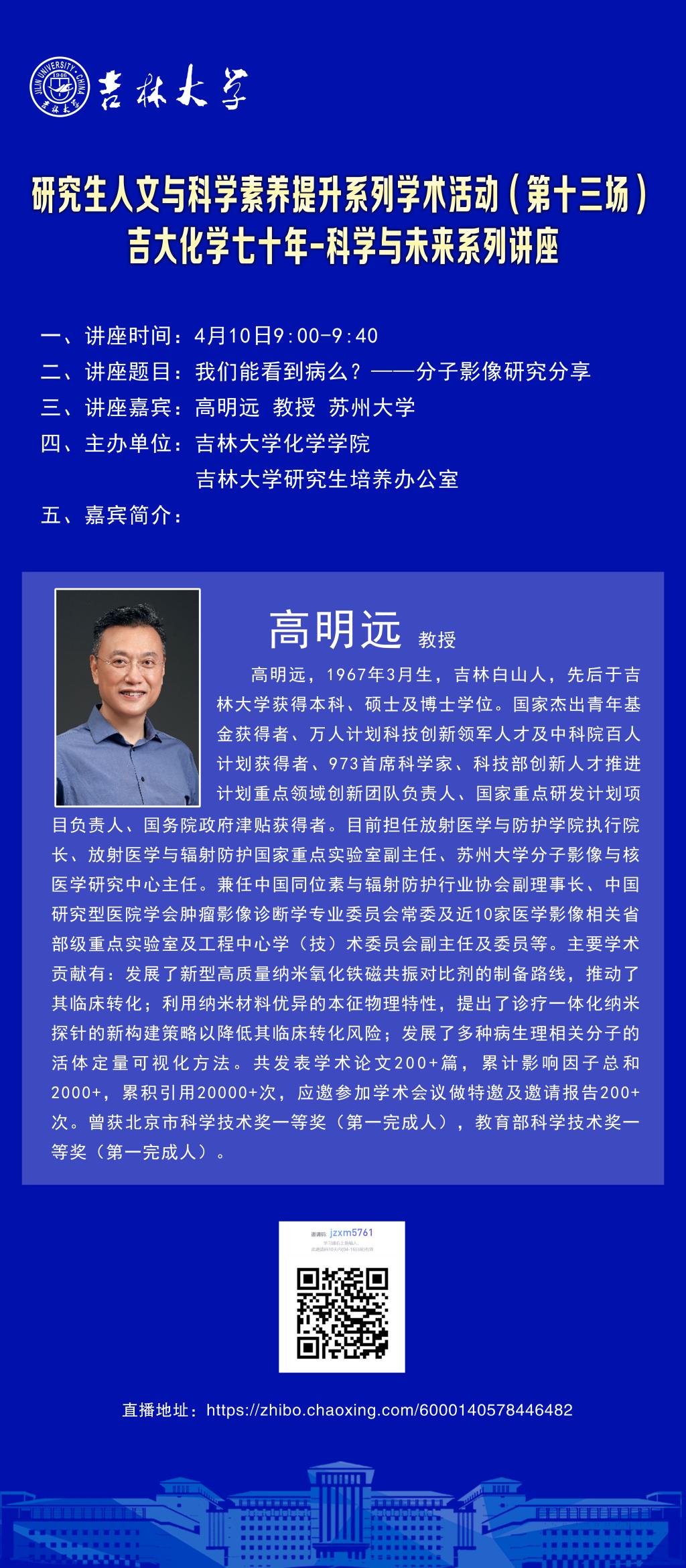 吉大化学70年院庆系列活动——科学与未来系列讲座:我们能看到病吗?——分子影像研究分享