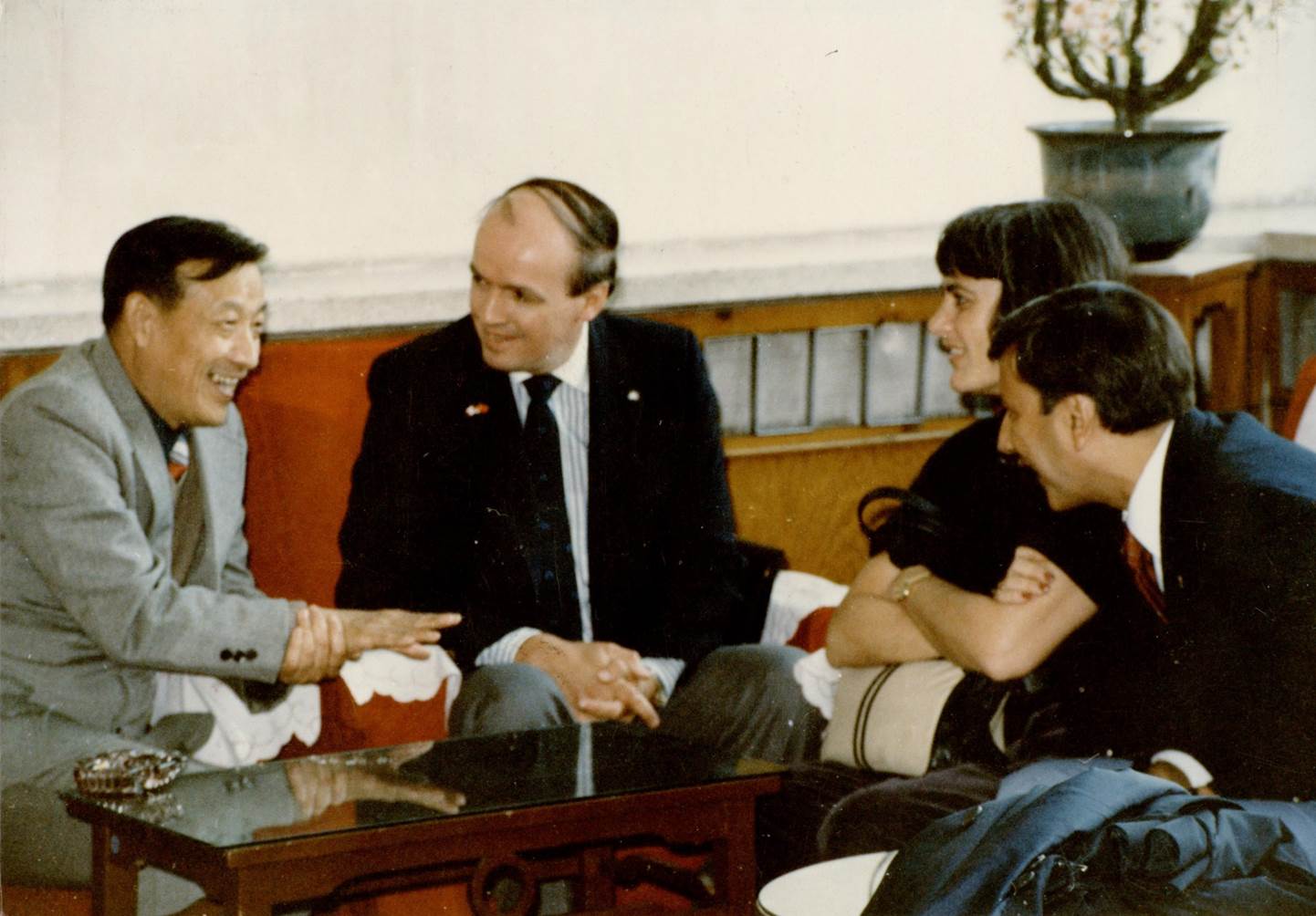 图11:1986年,英国365集团官网副董事长沈家骢教授(左1)与加拿大温泽大学代表团交流