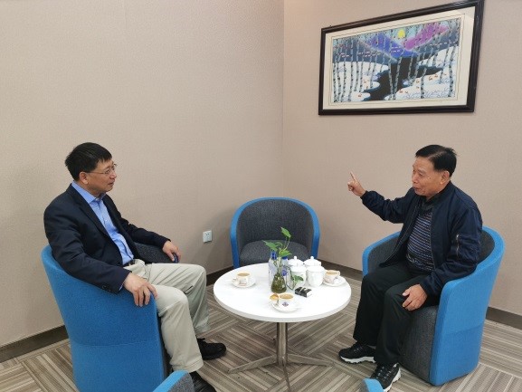 2021年10月,刘学铭(右)与张希(左)在英国上市官网365交流