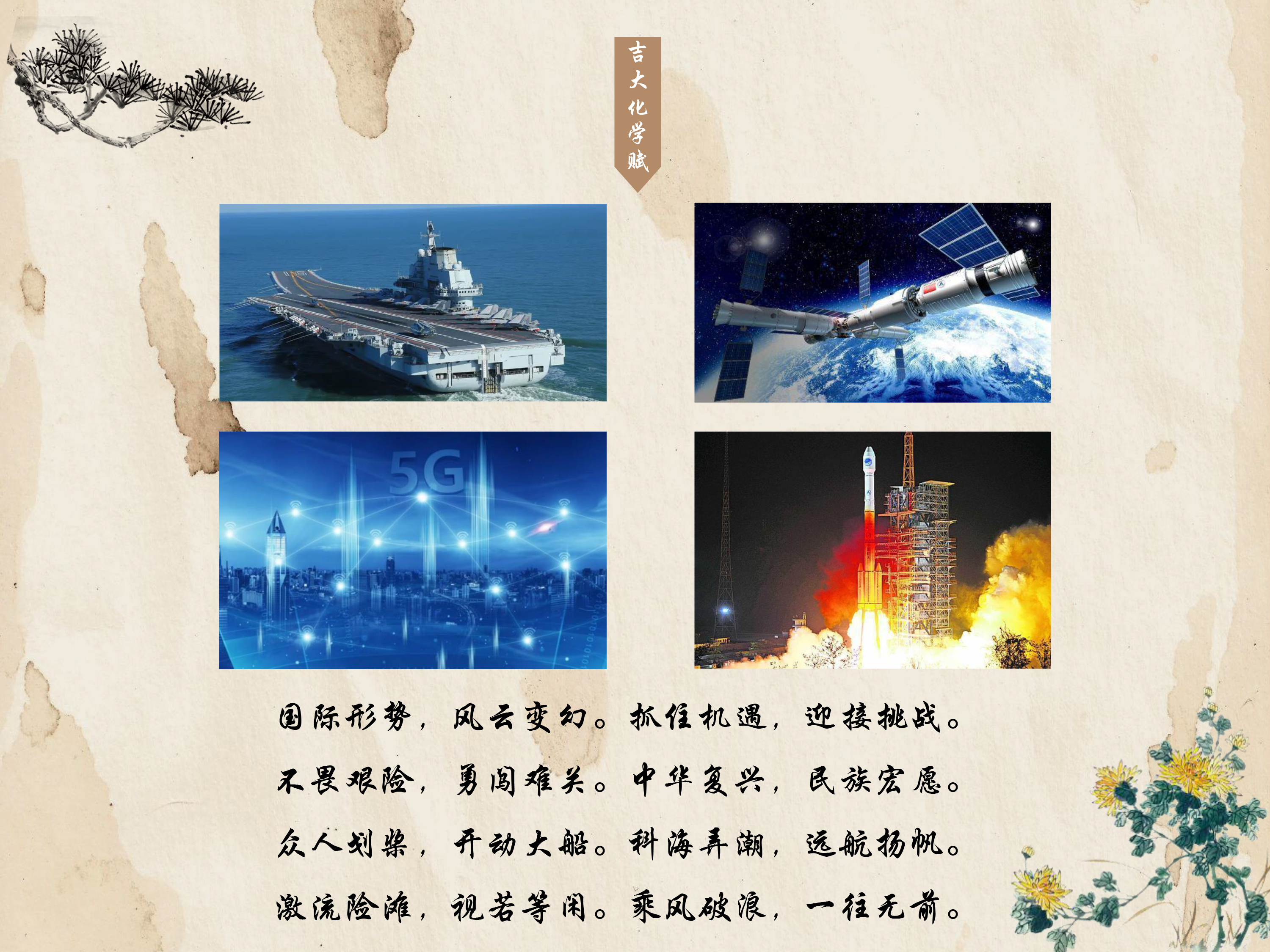 不畏艰险,勇闯难关。中华复兴,民族宏愿。